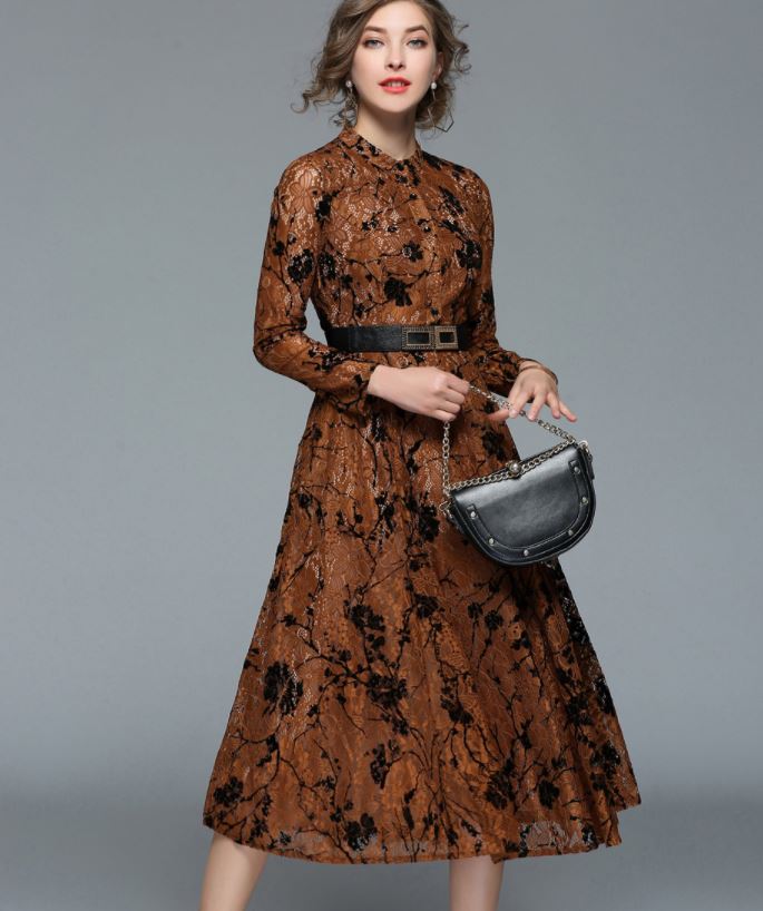 Golden Brown Dress - Fashion model gold dress, woman full length portrait in golden yellow long gown on white.