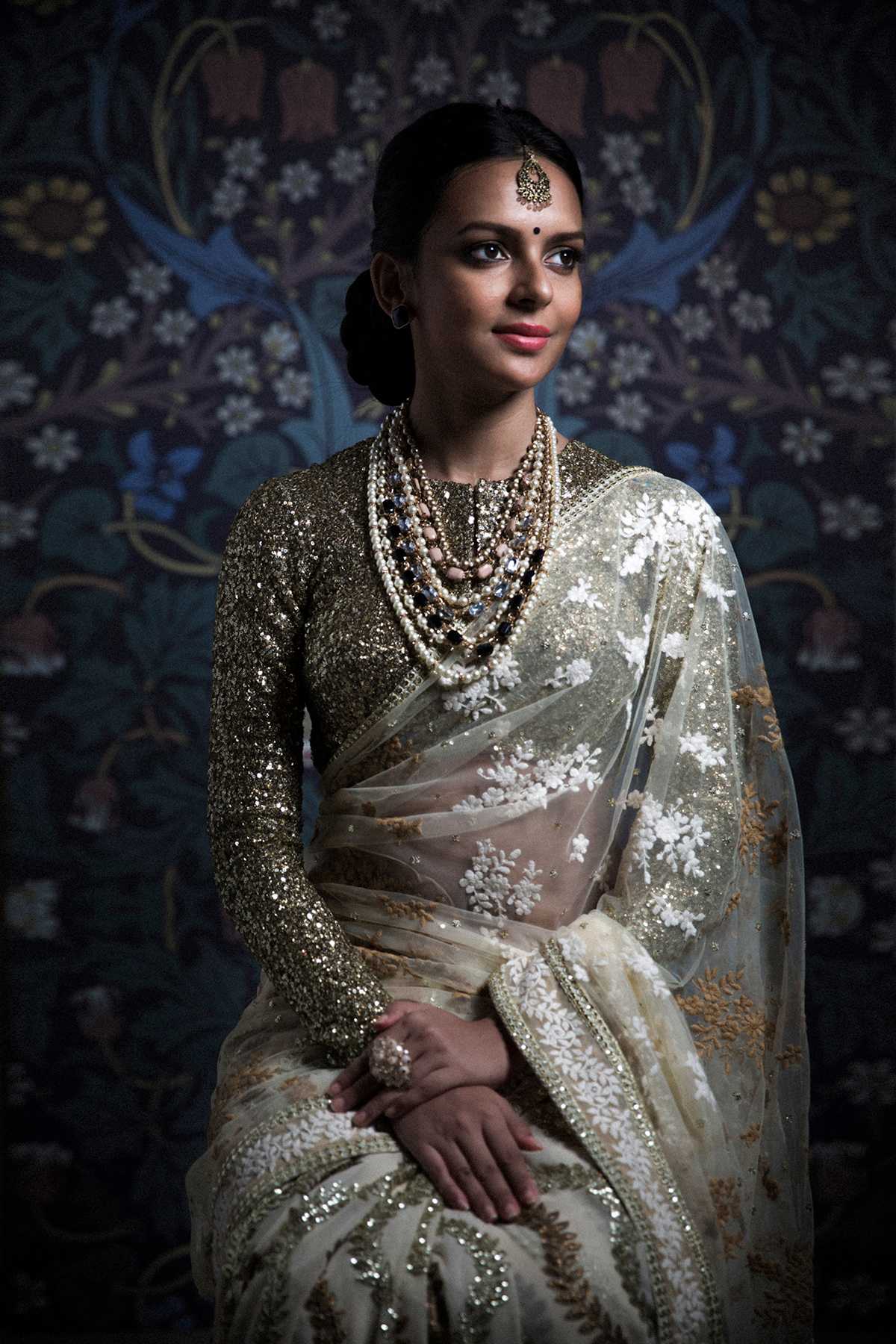 Manish Saree / Mouni chose a silver manish malhotra sequined saree for her recent appearance on bigg boss 14.
